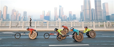 残特奥会女子全程马拉松T54级参赛选手在比赛中。新华社记者 毛想倩摄