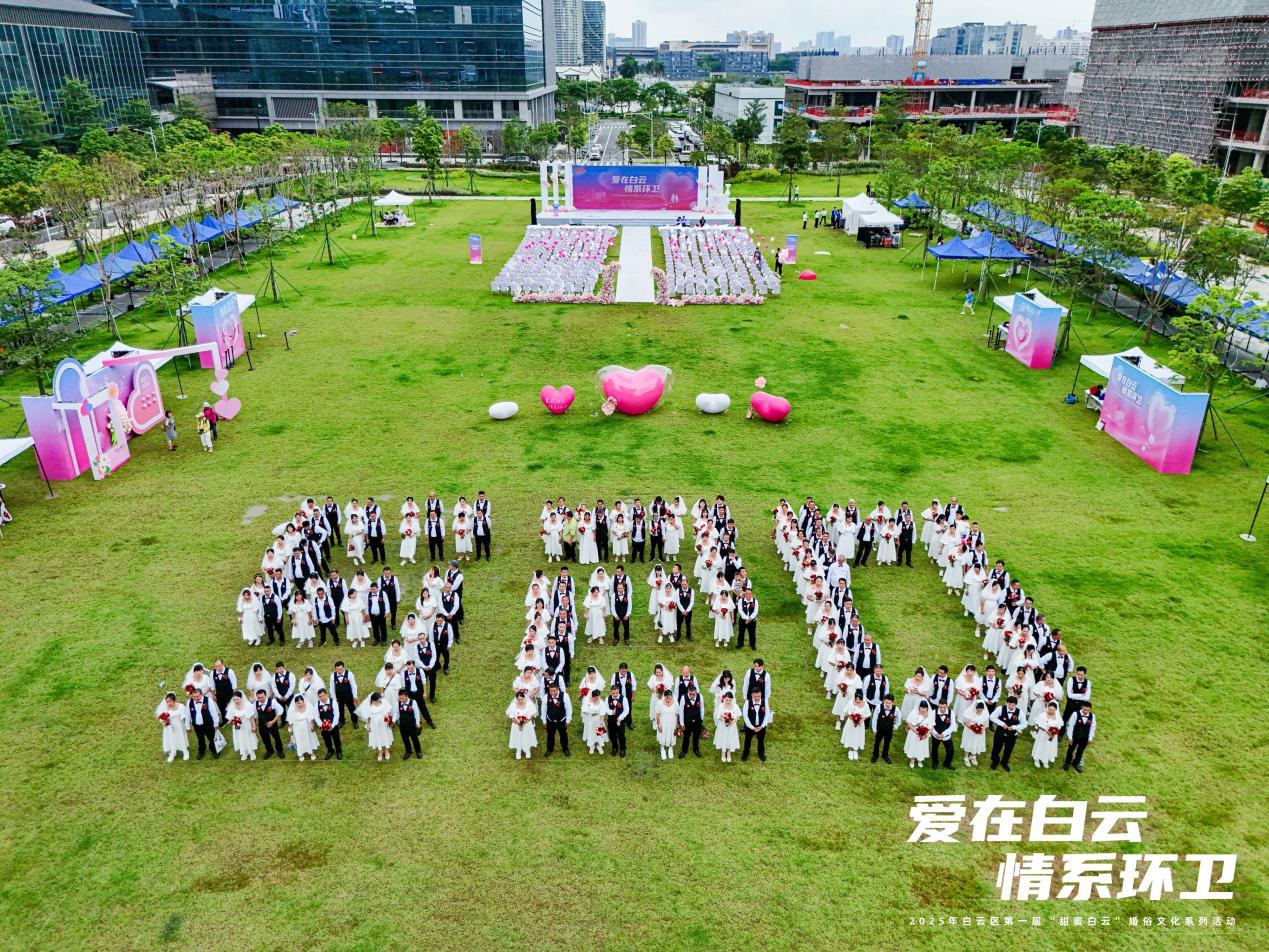 百对环卫工东说念主集体婚典在白云艺术广场举行。