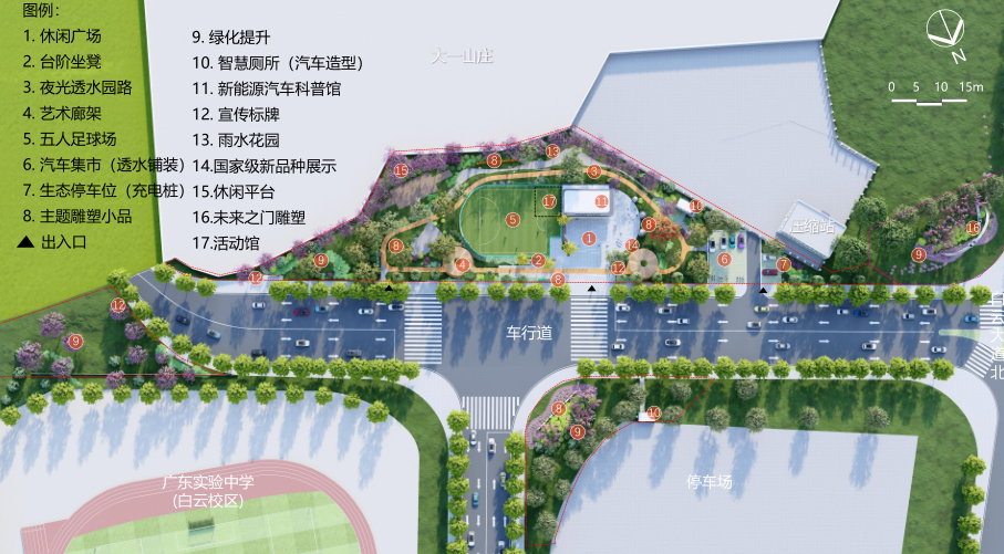 据先容,公园蓄意契合白云汽车大路的定位和产业特点,举座俯视呈汽车造型。建成后的公园有指挥失业和科普两大功能空间,一是接受甩手木柴、金属、砖石等材料进行轮回多功能愚弄,竖立微型足球场、夜光酷跑步说念、便民公厕等枢纽,为市民打造环保、沉着的失业指挥空间。二是围绕汽车文化、新动力期间、废物再愚弄,开采汽车科技文化科普展厅、建筑废物轮回愚弄科普展厅、汽车集市、无东说念主驾驶体验说念路,依期开展汽车和废物愚弄科普行为、车企品牌疏导和新品发布行为、新动力科技讲座等,打造白云区汽车与废物轮回愚弄文化地标。
