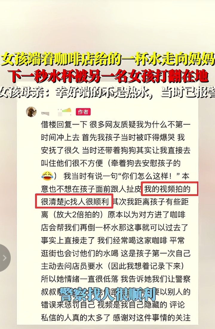 眼看孩子刚要到母亲眼前成果掌握的一位目生女孩径直把小女孩的水给打翻了,目生女孩的母亲看到这个场景也立马喊了一声制止,由于水打湿了女孩的裤子和鞋子是以女孩立马就哭了出来,孩子的母亲马上前劝慰孩子